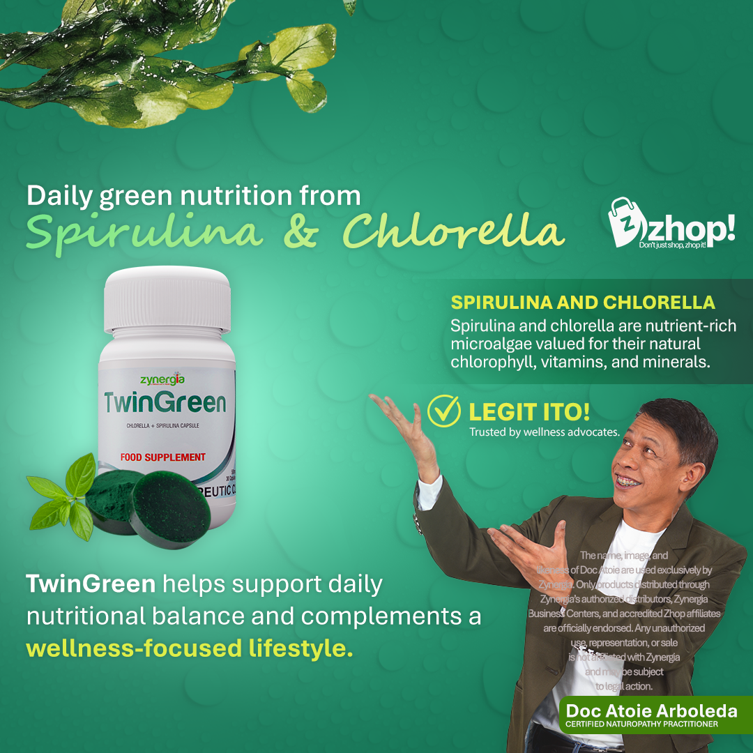 TwinGreen is a dual-superfood supplement made with 100% organic Spirulina and Chlorella two of the most nutrient-rich green algae. Rich in plant protein, chlorophyll, and antioxidants, it supports detox, immune defense, and cellular health. It also helps eliminate toxins, boost energy, improve digestion, and balance your body’s pH a clean, plant-based way to power your wellness.